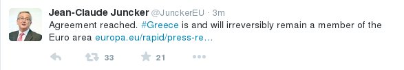 «Επιτεύχθηκε συμφωνία. Η Ελλάδα είναι και θα παραμείνει